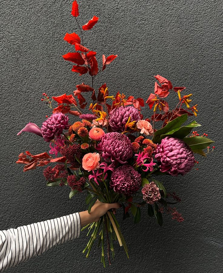 This bouquet is another dream. Moody colors, combining a bit of winter with the rich feel of red and love. Gorgeous!