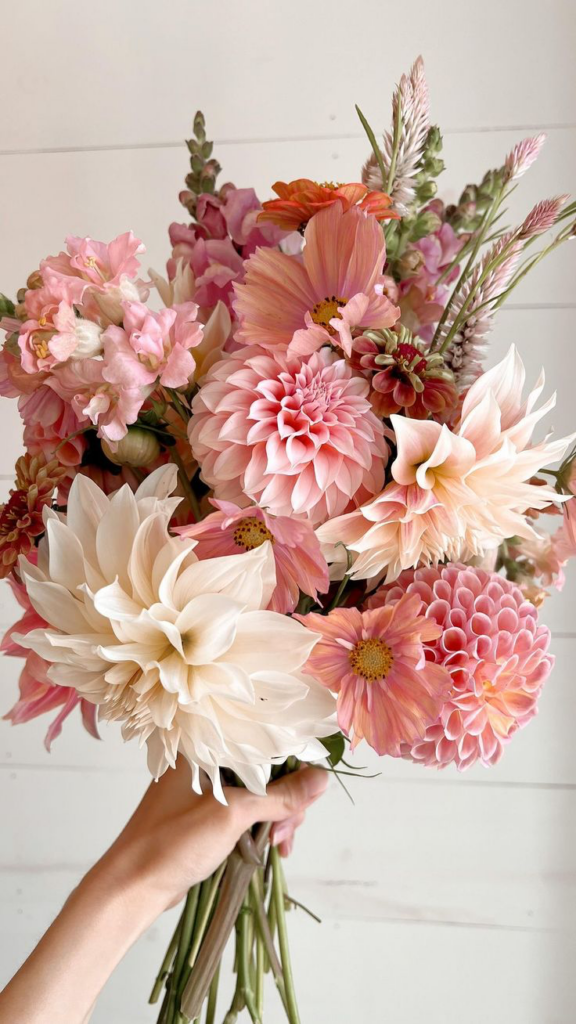 One of the most beautiful flowers out there if you ask me are Dahlias, and this bouquet is perfect with it. However, Dahlia is usually a flower found in late summer/autumn, so it might be tricky to get some. If you do have the chance though, then this bouquet is a perfect inspo to make anyone happy.