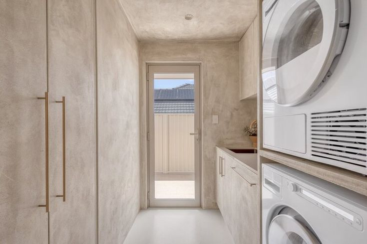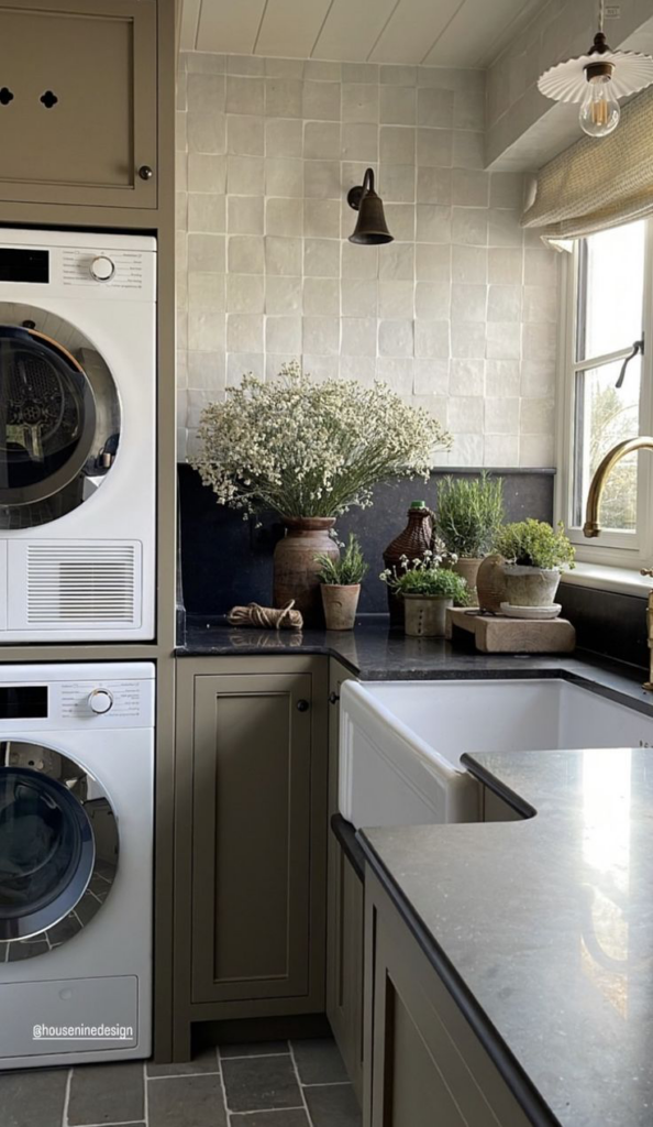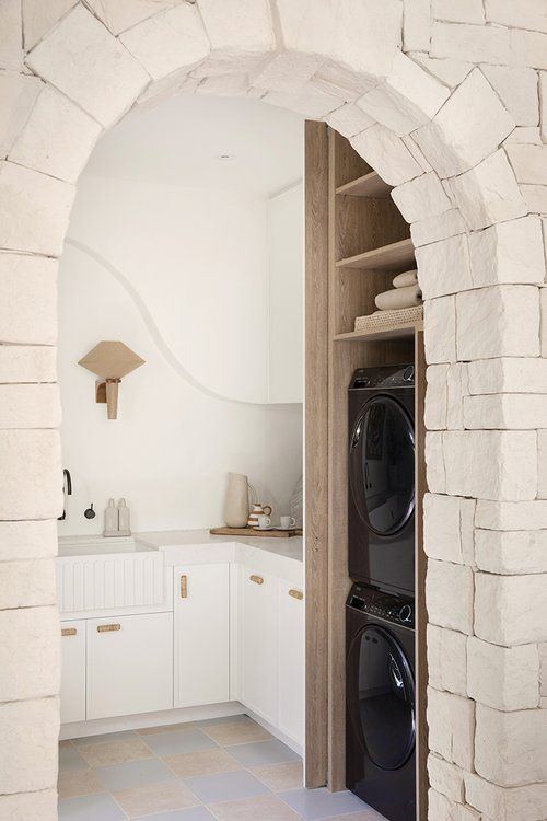 Venetian plaster or lime wash is one of the most beautiful ways to transform your home, if you ask me. Very hygienic, and beyond gorgeous, leaving a minimalistic but elegant design. This laundry room feels so calming!