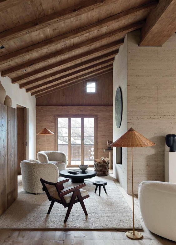 For a rustic element or a touch of warmth, consider installing a wooden ceiling. Wood ceilings add texture, character, and natural beauty to a space, making them a popular choice in both traditional and modern interiors. Whether you prefer the warmth of rich mahogany or the rustic charm of reclaimed barn wood, wooden ceilings can instantly infuse a room with charm and sophistication. Wooden ceilings usually do not count to modern ceiling design but are still a very attractive living room ceiling idea, although it depends on the interior design style.