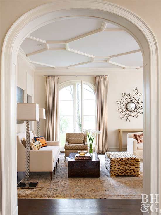 With a vaulted ceiling, tray ceiling, or a coffered ceiling, which function als design elements and impact the room feel, these elements can additionally be highlighted and accentuated with light (either with direct or indirect lighting).