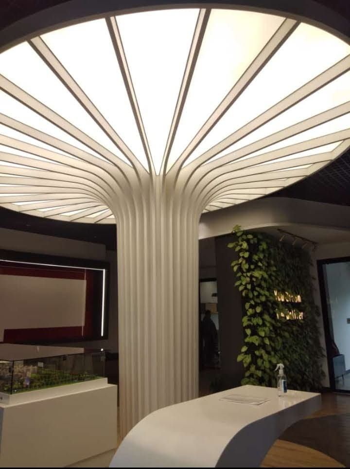A relatively modern false ceiling design technique, stretch ceilings offer a sleek and contemporary alternative to conventional ceilings. Made from lightweight PVC or fabric material, stretch ceilings can be customized to fit any space and come in a variety of colors and finishes. They provide a seamless, smooth surface that can be illuminated from behind to create a soft, diffused lighting effect.