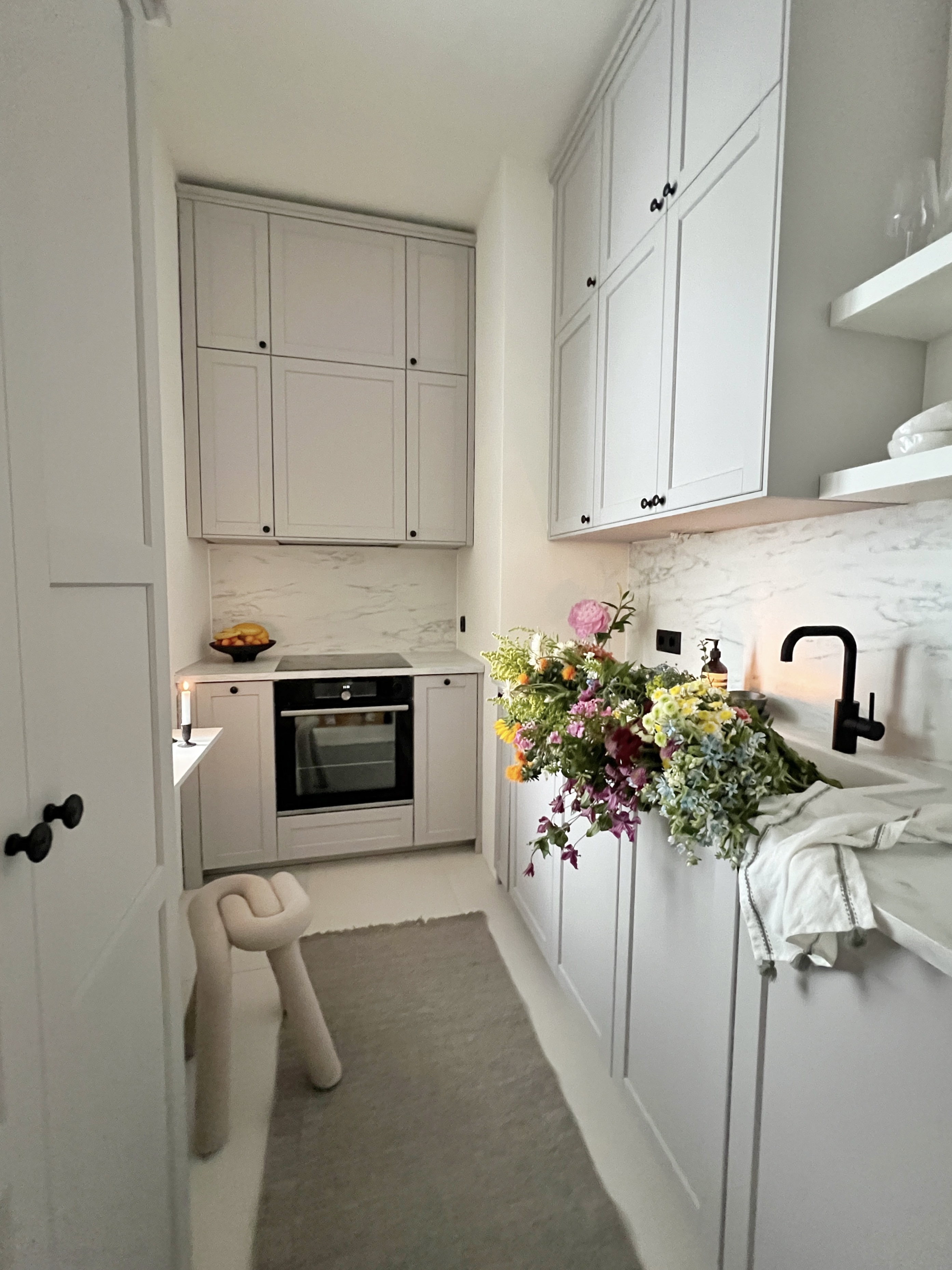 Due to the uneven walls, it was quite a challenge to get the kitchen in its exact position once it had arrived. However, luckily everything worked out just fine in the end and I couldn’t be happier with my little kitchen now!