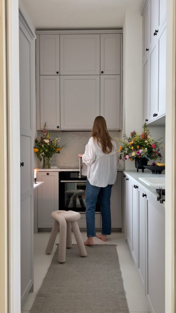 One of the things everyone was concerned about when I had finished my kitchen plans were the small fridge that would go under the worktop. That way, I would be able to have a much longer worktop with a lovely coffee corner and some open shelves to display my favorite ceramics, as well as this made the space more airy. However, despite all the skepticism, I did it anyways! (of course, what were you expecting :D). And guess what, I haven’t regretted it a single second. The fridge has the perfect size for our household and gives us sooo much more space to work and cook on, that it’s a true game changer. Highly recommend!