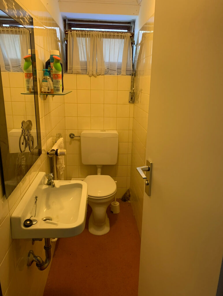 But how did we do this? Let’s take a look at the before: ugly, filthy, disgusting single lavatories of which we had four next to each other. You can imagine it like 4 “toilet cabins” but with a proper wall in between them.
