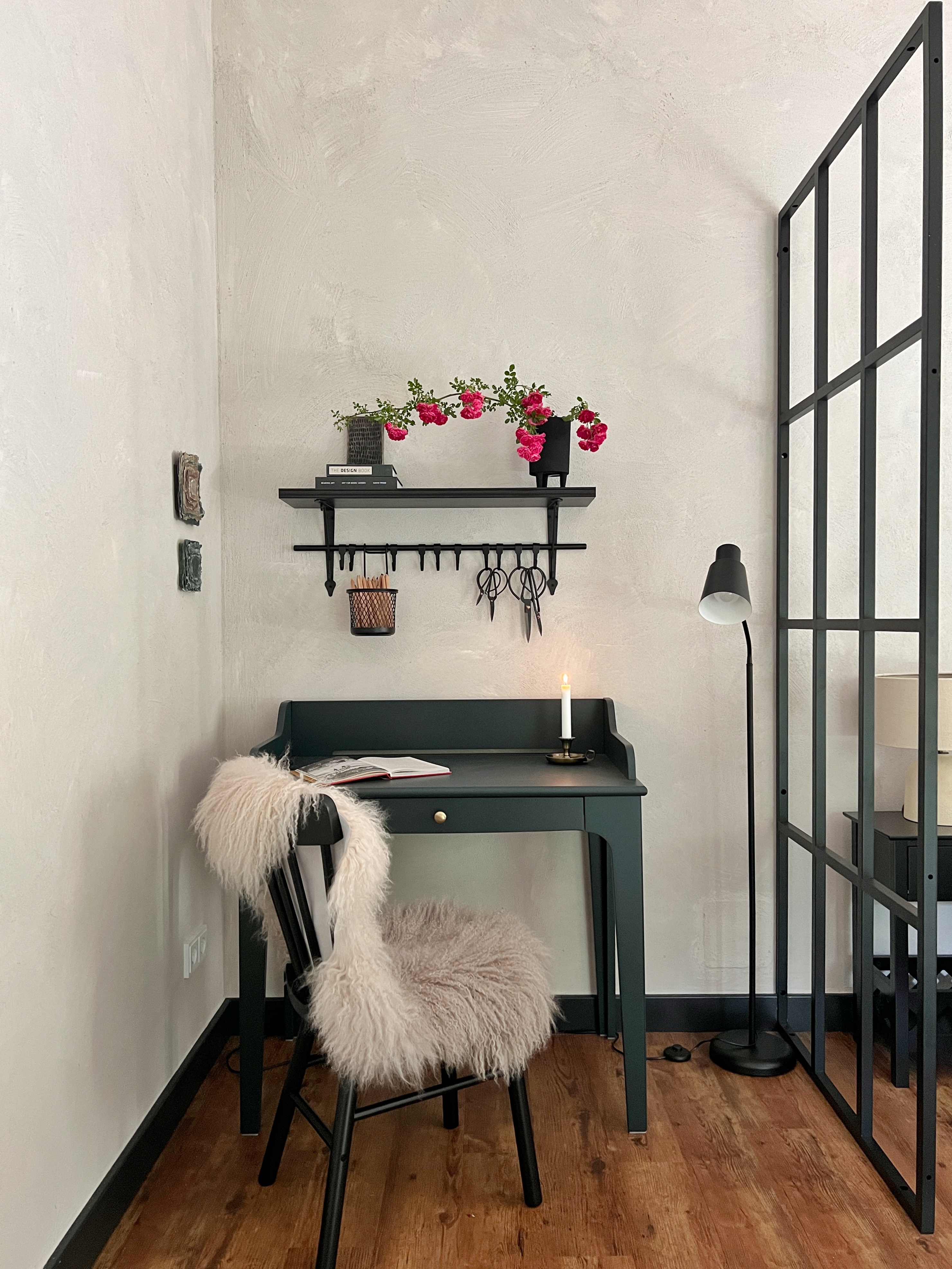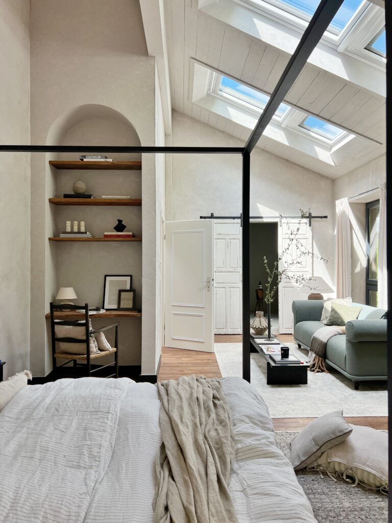 Other than that, I decided to paint the wooden ceiling in the same colour and paint as the walls (mineral plaster). This was definitely a risky decision, as wood is usually not the perfect underground for plaster. However, as I really needed and wanted the ceiling to match the walls, I had the painters test the mineral plaster on the ceiling, and once we saw it worked very well, we decided to just go for it. No risk no fun, right? And guess what, I’d do it over and over again!
