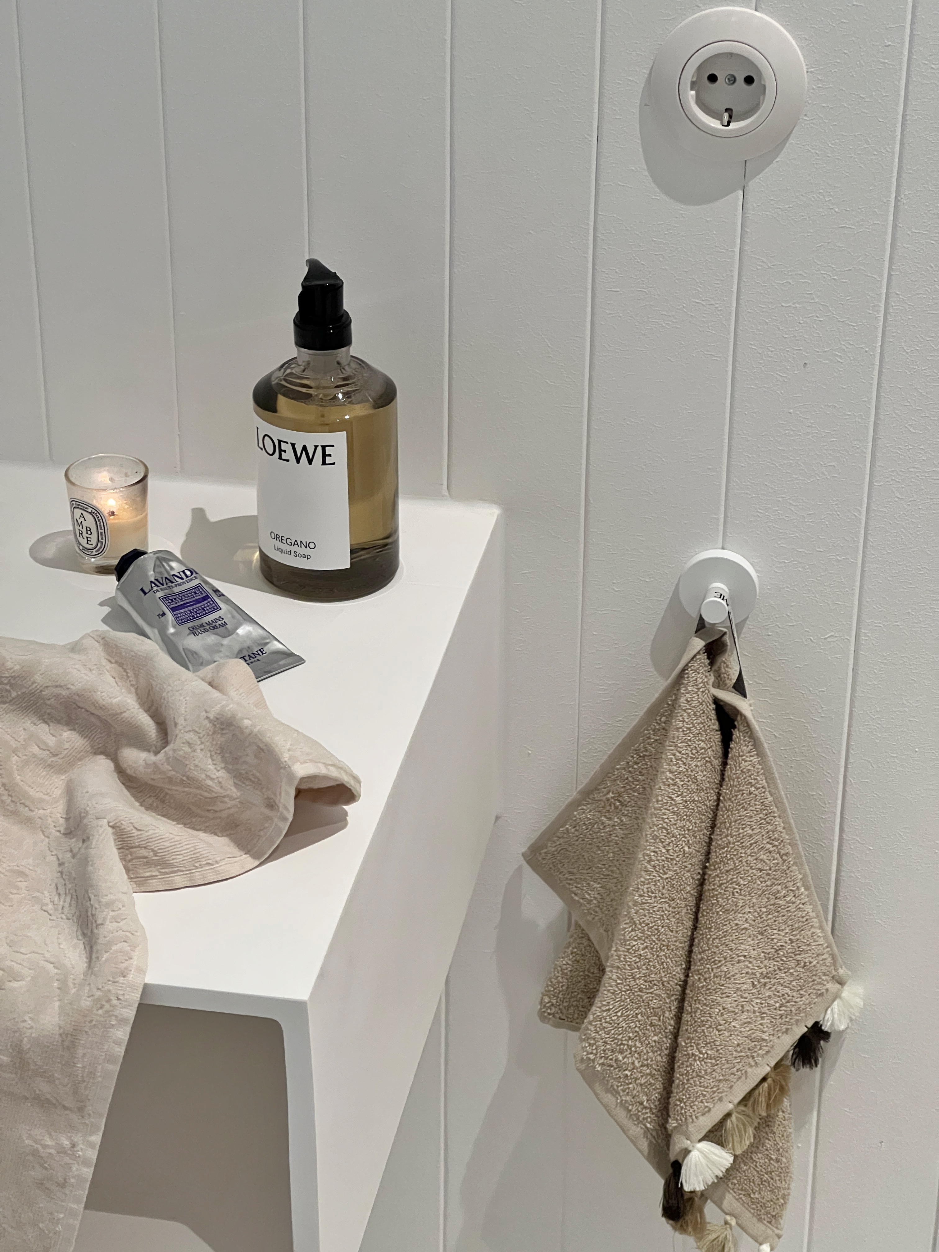 The white fittings are perfect if you are looking for a special and unique touch for your space, as well as it can either be an eye-catcher (for example if you use them in front of a accent wall) OR a very clean and minimalistic addition (for example if you use them in front of a white, neutral wall). In contrast to the DEEP BLACK series I used in my own home (in front of a colorful, floral wallpaper), we used the SIRO WHITE fittings in a very clean and calm atmosphere at Apartment 13, with the goal to keep it very minimalistic.