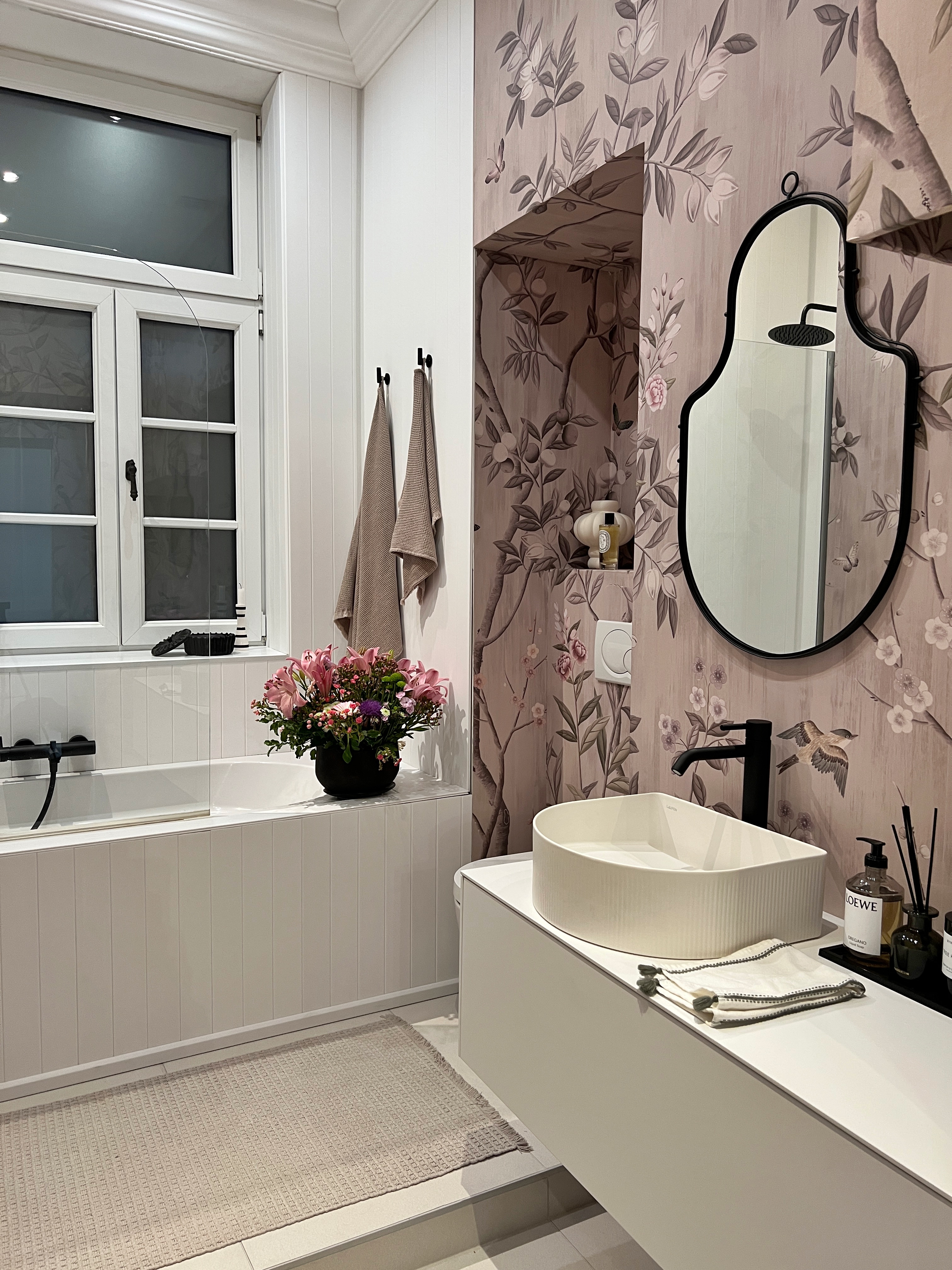 However, herzbach has much more to offer than the trending black fittings. As one of the few brands, herzbach also offers white, bronze, chrome, gold, and other finishes. What particularly caught my eye were the brand new white fittings (SIRO WHITE) which looked so unique, unlike anything I have seen before. Luckily, together with Marietta from @vonmuto.living, we were able to use SIRO WHITE in her project “Apartment 13” in Vienna, and I think the results speak for themselves.