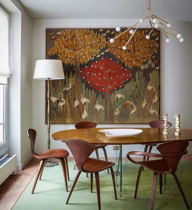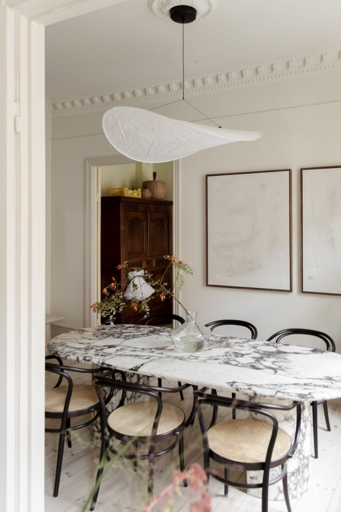 Side note: I have to admit I am not the biggest fan of glass dining tables, as they make the space a bit larger and bring in a sense of it being lost. However, when done correctly, it can also be very useful for smaller spaces, leaving enough space to breathe. But overall, I believe glass dining tables are a bit more difficult to style than other options.