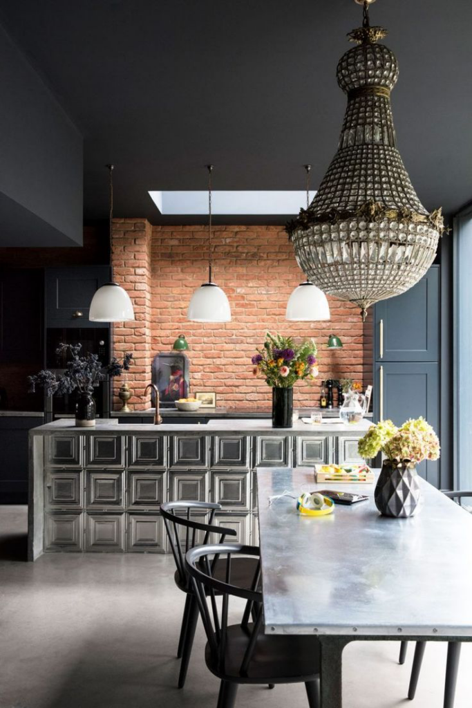 - Combines wood and metal for a raw, edgy look.