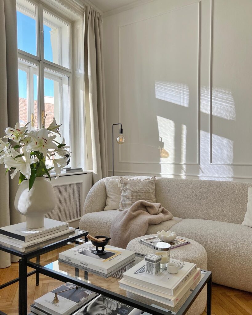I highly, highly recommend to rather invest into higher quality materials than just a quick fix solution. The high quality materials will leave you happy for a long time and also contribute to a healthy living situation. Particularly, I love wooden floors, and neutral materials in textiles, such as linen, cotton, or wool. I always try to avoid lower quality products and synthetic fibers at all cost.